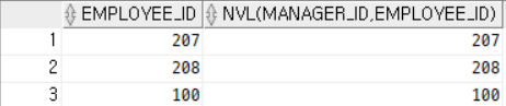 SELECT EMPLOYEE_ID, NVL(MANAGER_ID,EMPLOYEE_ID)