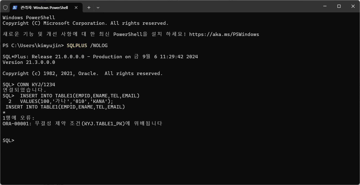 4)SQLPLUS(POWERSHELL)에서 화면이 바뀐다.
