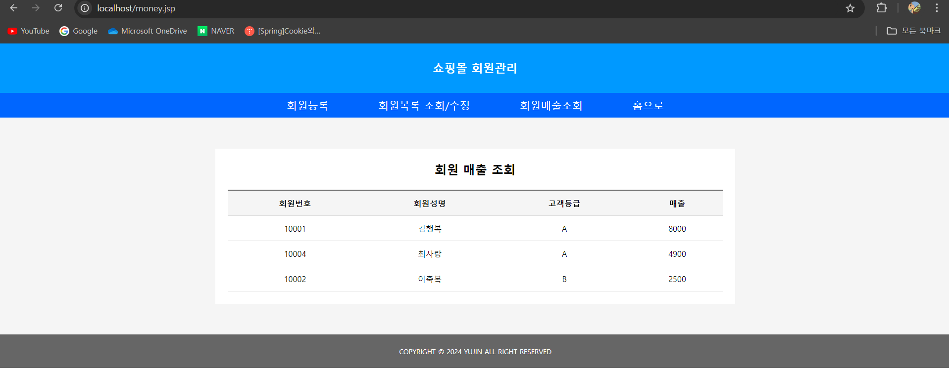 sql문에만 조금 수정이 있을뿐 전체적인 형식은 회원정보조회와 크게 다르지 않다.