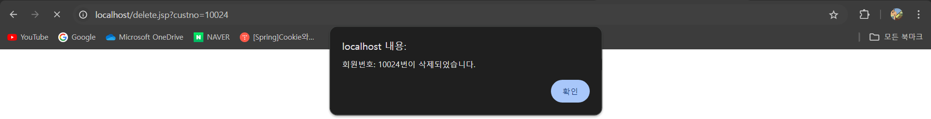 out.println("<script>alert('회원번호: " + custno + "번이 삭제되었습니다.');</script>");